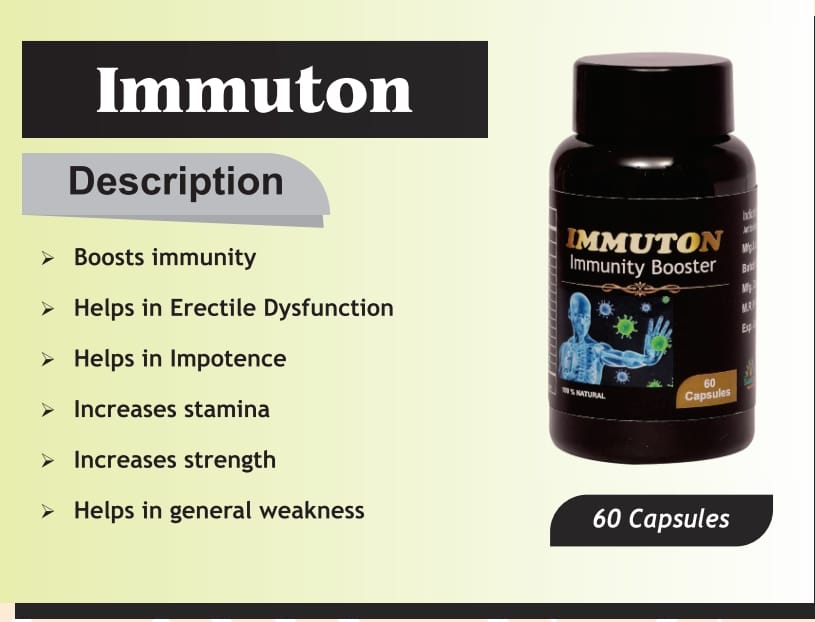 Immuton is a powerful Ayurvedic wellness supplement designed to strengthen the body’s natural defense system and support overall immunity. Formulated with carefully selected herbal ingredients, Immuton helps your body stay protected, active, and healthy throughout the year.